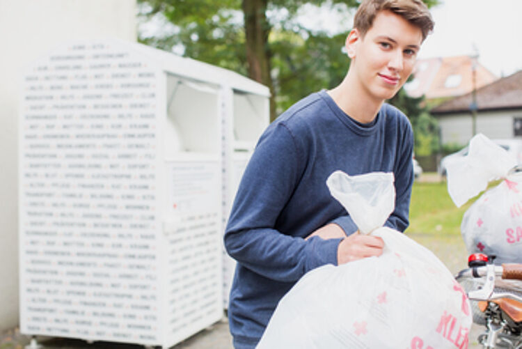 Bitte werfen Sie keine losen Einzelteile in den Kleidercontainer. Wir leeren diesen zwar regelmäßig, dennoch spart es uns wertvolle Zeit, wenn wir nicht jedes Teil einzeln aus dem Container holen und verpacken müssen.